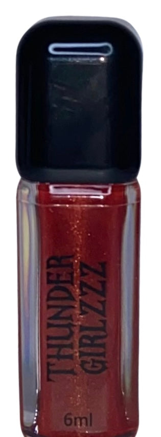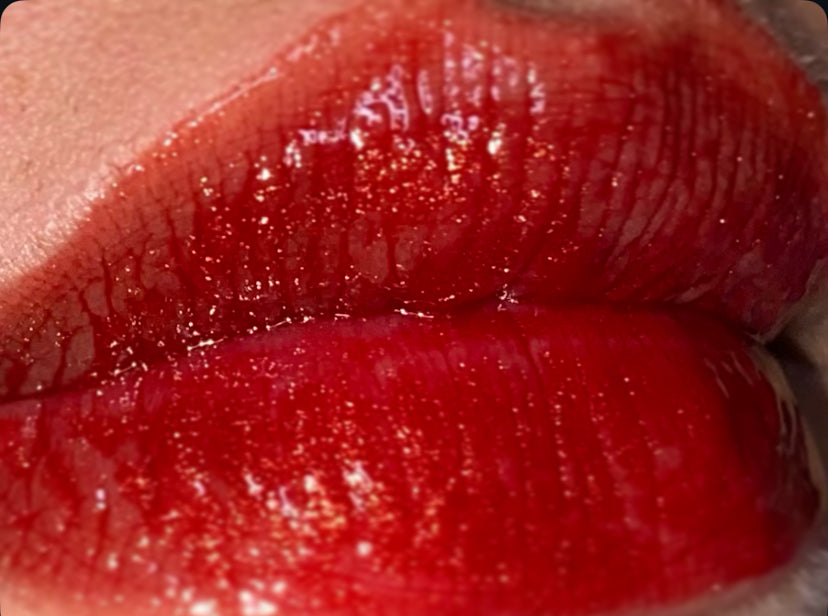 Inspired by the Queen of Hearts from Alice in Wonderland, this lip gloss reigns in a bold red shade with golden sparkles fit for royalty.